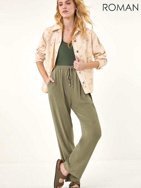 Roman Green Elastic Waist Tie Front Linen Mix Trousers