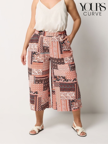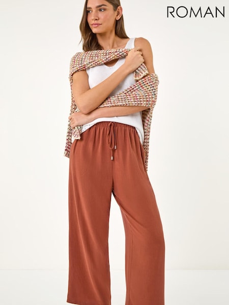 Yours Curve Brown Bubble Textured Cropped Trousers