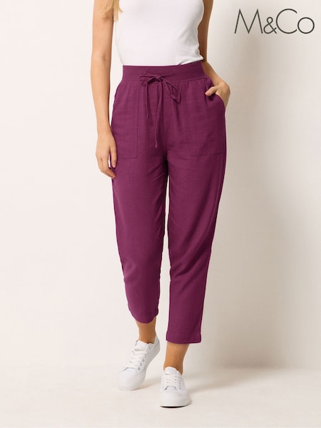 M&Co Purple Petite Linen Blend Cropped Trousers