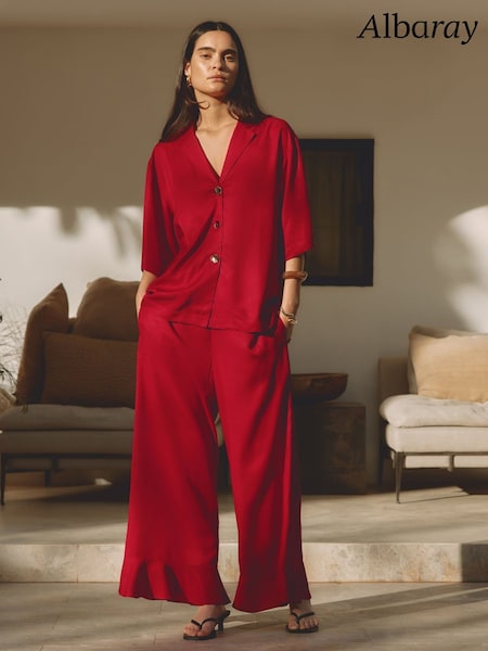 Mint Velvet Red Linen Blend Wide Leg Trousers