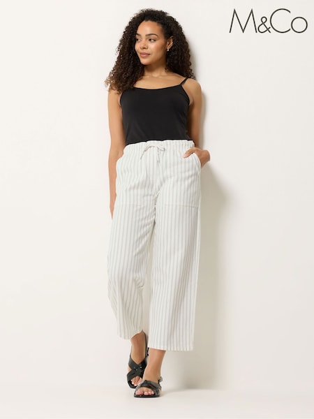 M&Co White Petite Stripe Wide Leg Cropped Trousers