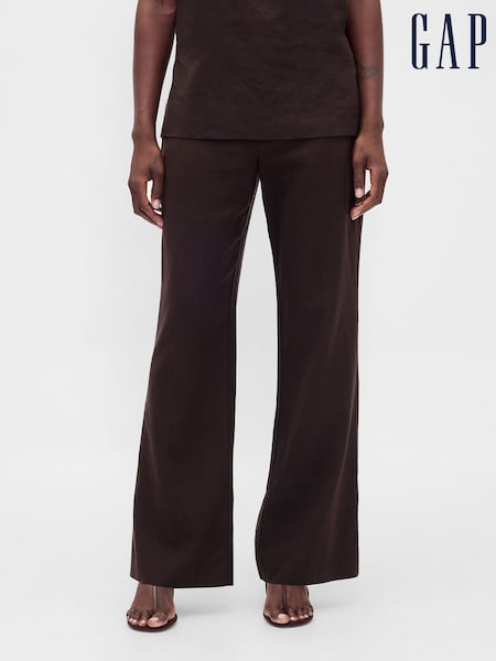 Gap Brown Low Rise Linen-Blend Flare Trousers