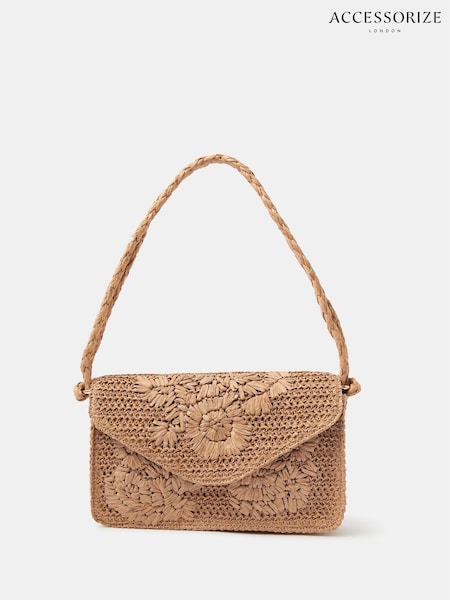Accessorize Brown Stripe Raffia Cross-Body Bag