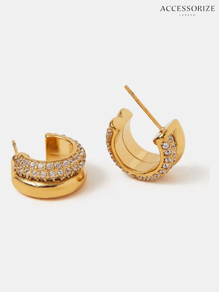 Accessorize Gold Stainless Steel Pavé Double Hoop Earrings