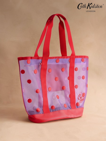 Cath Kidston Red/Lilac Purple Polka Dot Mesh Beach Bag