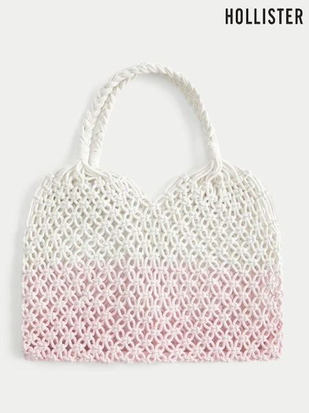 Hollister White Dip Dye Textured Woven Beach Bag