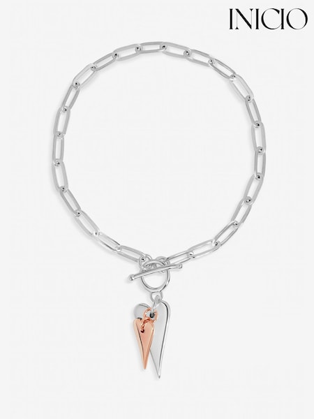 Inicio Sterling Silver Plated Two Tone T-Bar Heart Bracelet Gift Pouch