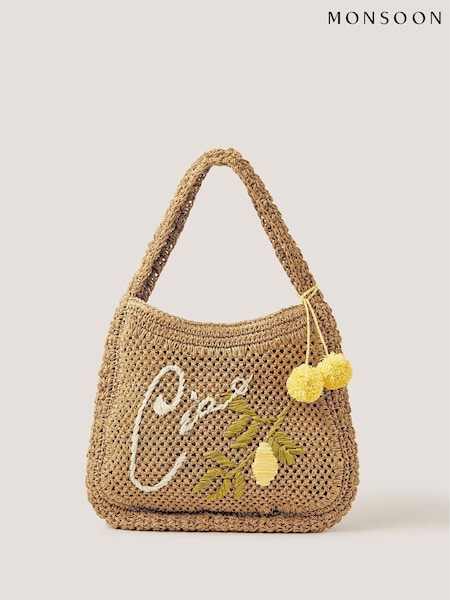 Monsoon Natural Ada Embroidered Woven Shoulder Bag