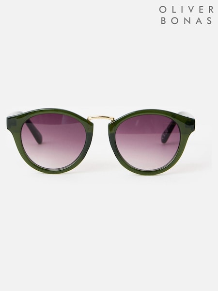 Oliver Bonas Green Marbled Arm Preppy Sunglasses