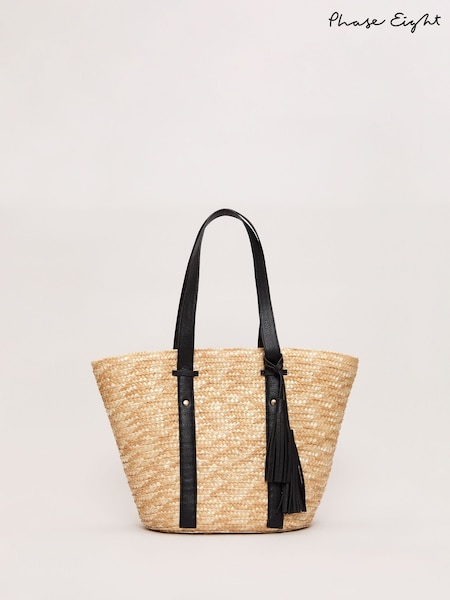 Phase Eight Black Straw Shopper Bag