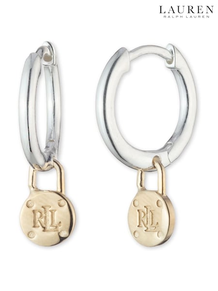 Lauren Ralph Lauren 925 Sterling Silver Vermeil Padlock Drop Hoop Earrings