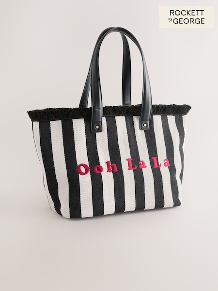 Rockett St George Black/White Ooh La La Stripe Beach Tote Bag