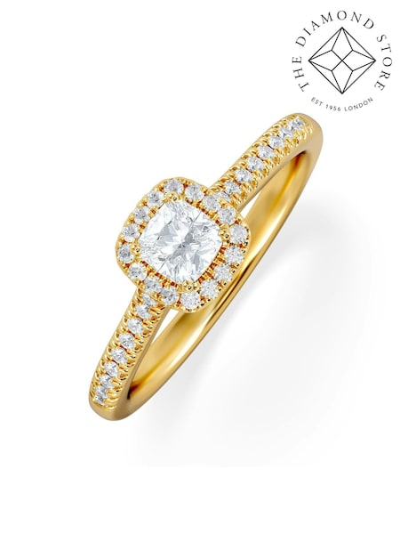 The Diamond Store Gold Lumia Cushion Cut Lab Diamond Halo Ring 0.50ct F/VS in 18K Gold Vermeil
