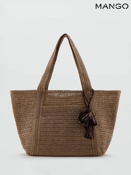 Mango Brown Straw Tote With Charm
