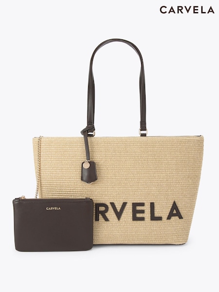Carvela Brown Frame Raffia Tote Bag