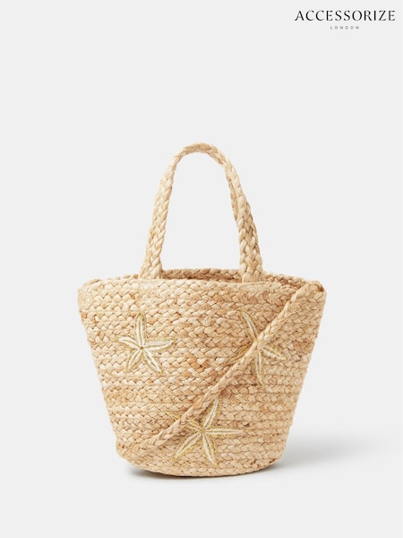 Accessorize Natural Embroidered Starfish Raffia Bag