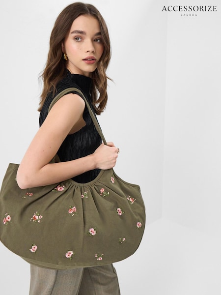 Accessorize Cream Floral Embroidered Corduroy Shopper Bag