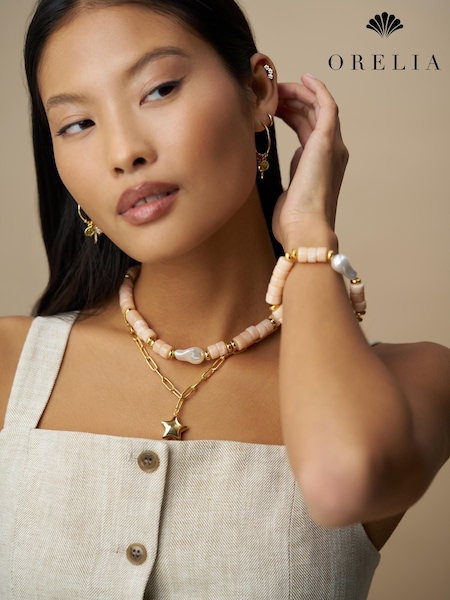 Orelia London Gold Tone Statement Pearl & Bead Bracelet