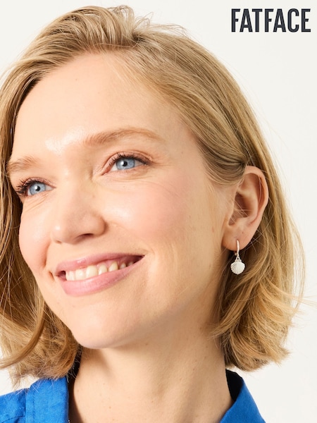 FatFace Silver Tone Shell Charm Earrings