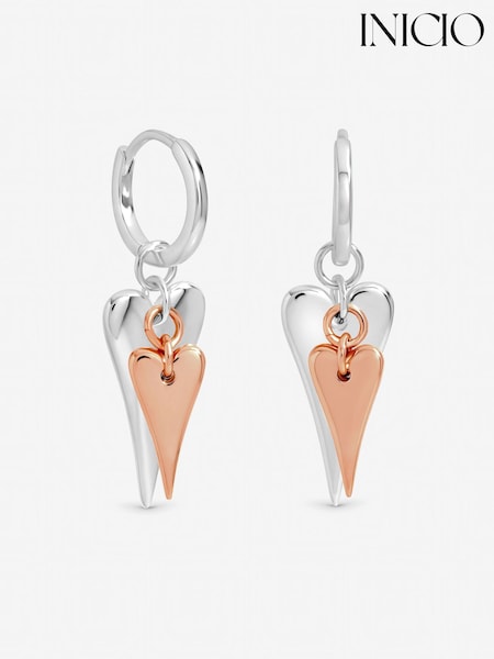 Inicio Silver Plated Two Tone Heart Charm Hoop Earrings - Gift Pouch