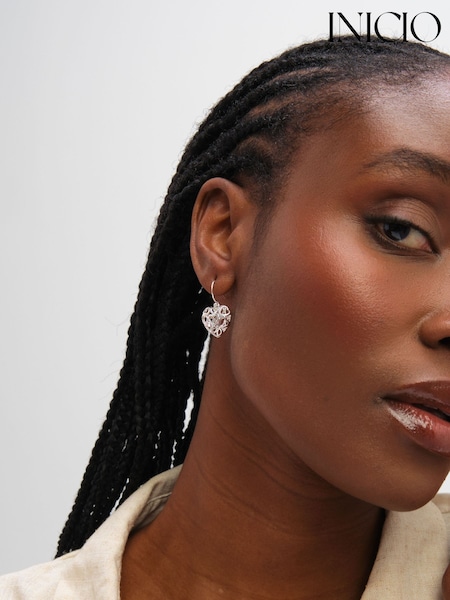 Inicio Sterling Silver Plated Filagree Puff Heart Fishhook Earrings