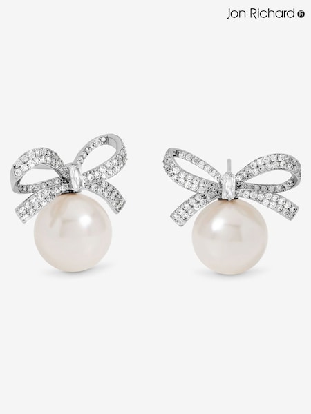 Jon Richard Silver Rhodium Plated Crystal Bow and Pearl Earrings