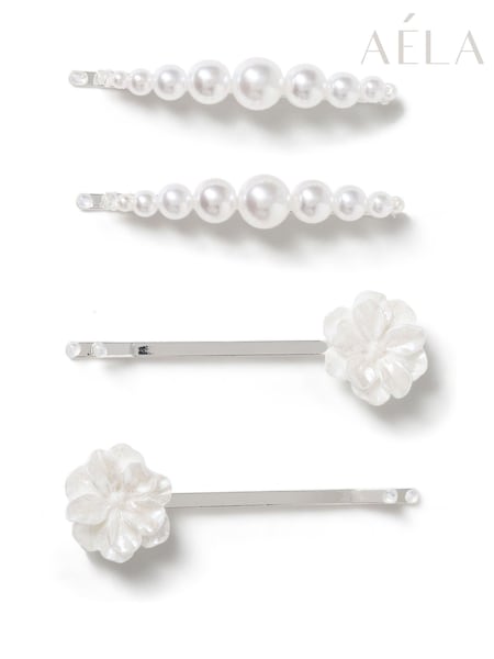 Aela Silver Tone Sparkle Pearl Barette Clip