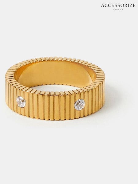 Accessorize Gold Tone Stainless Steel Stone Band Ring