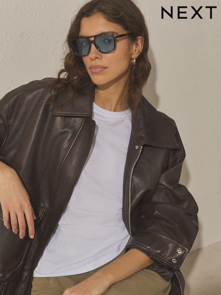 Tortoiseshell Blue Square Sunglasses