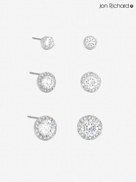 Jon Richard Silver Crystal Halo Earrings Multipack
