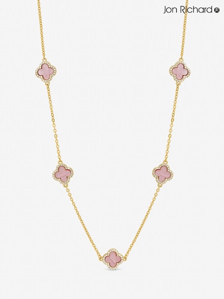 Jon Richard Pink Gold Tone Station Clover Necklace