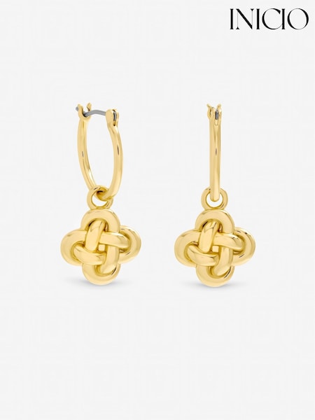 Inicio Gold Tone Polished Knotted Clover Huggie Earrings Gift Pouch