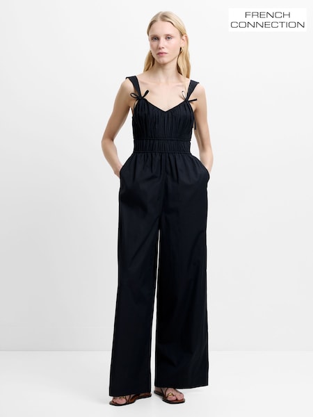 French Connection Black Era Poplin Ruched Bust Jumpsuit