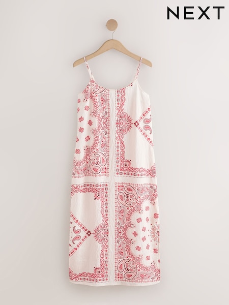 Cream/Pink Paisley Midi Slip Summer Dress