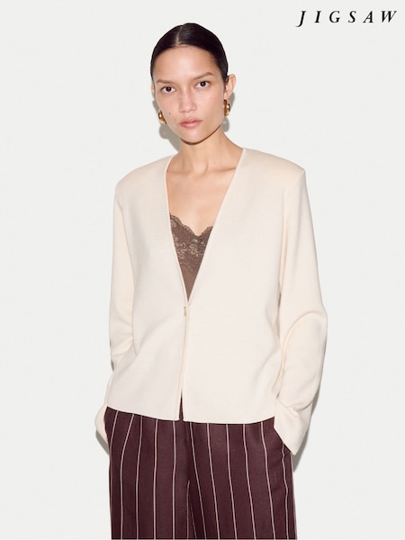 Jigsaw Cream Linen Blend Open Stitch Poncho