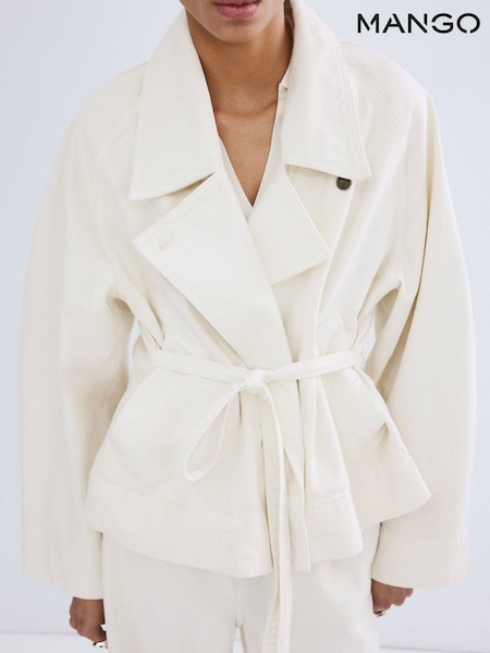 Mango Burgandy Asymettric Button Short Trench Coat With Detachable Hood