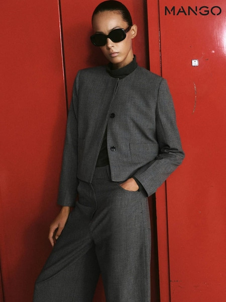 Mango Brown Oversized Pinstripe Pocket Detail Suit Blazer