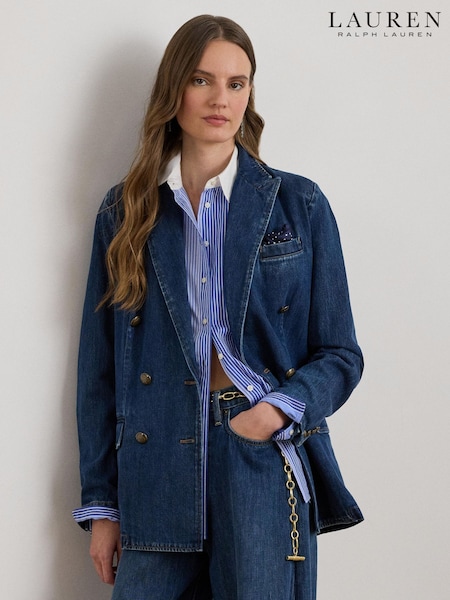 Lauren Ralph Lauren Blue Anfisa Crest Logo Blazer Jacket