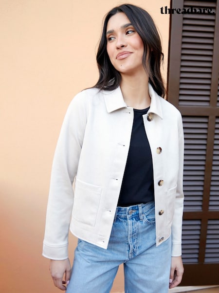 Threadbare Cream Petite Cropped Button Up Suedette Shacket