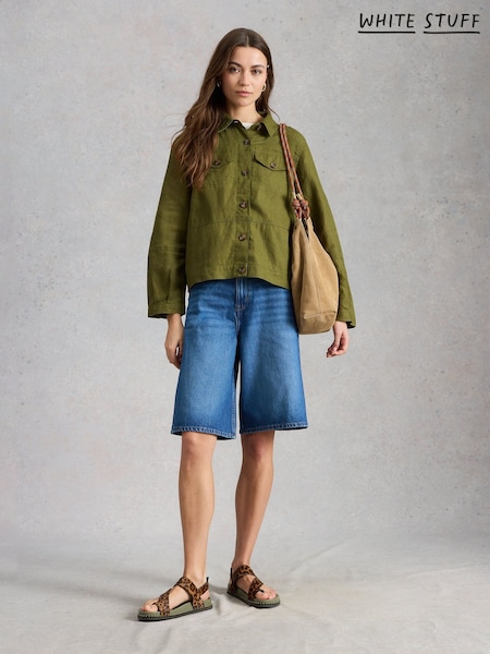 White Stuff Green Camille Linen Jacket