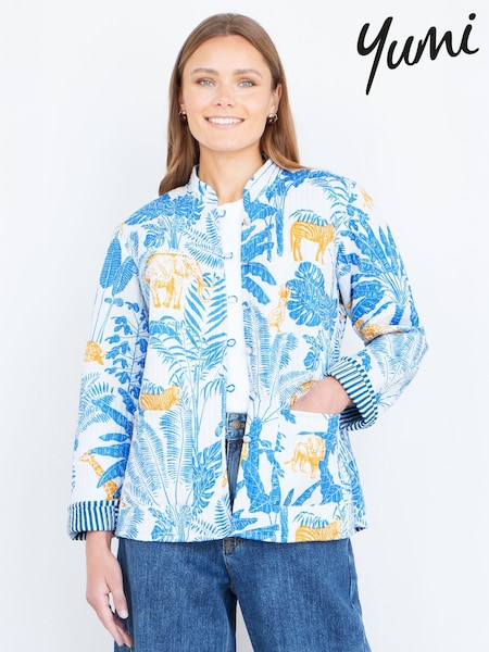 Yumi Blue Palm Reversible Cotton Quilted Jacket