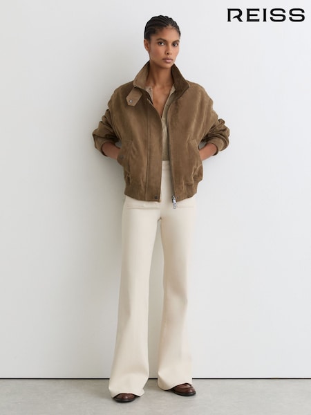 Reiss Neutral Cara Petite Suede Funnel-Neck Bomber Jacket