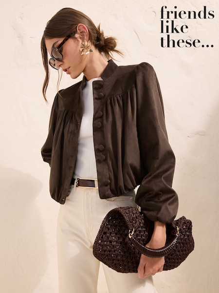 Friends Like These Chocolate Brown Faux Suede Bubble Hem Jacket