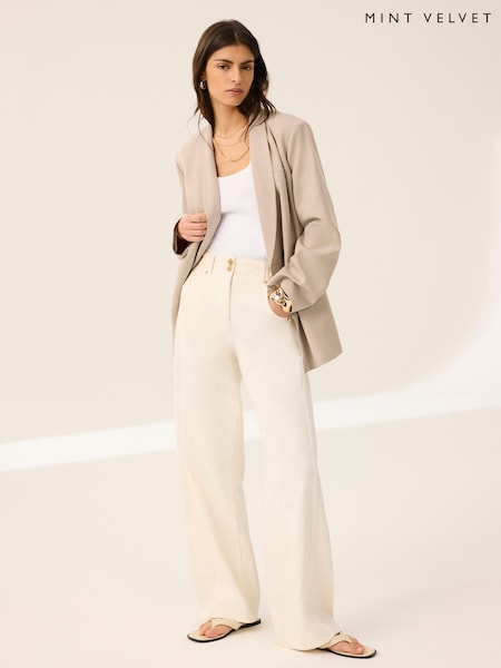 Reiss Stone Neutral Gabi Petite Tailored Single Breasted Suit Blazer