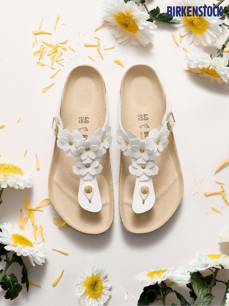 Birkenstock Pink Gizeh Flowers Smooth Leather Sandals