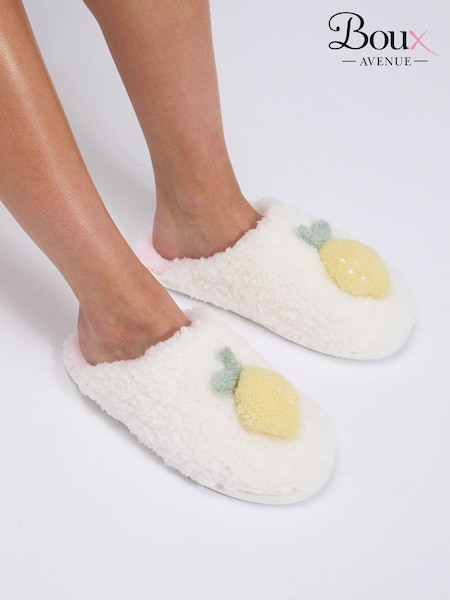 Boux Avenue White Plush Bow Mix Slipper Sliders