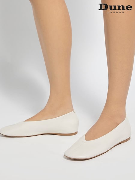 Dune London Metallic Wide Fit Leather Hallo Charm Trim Leather Ballet Shoes