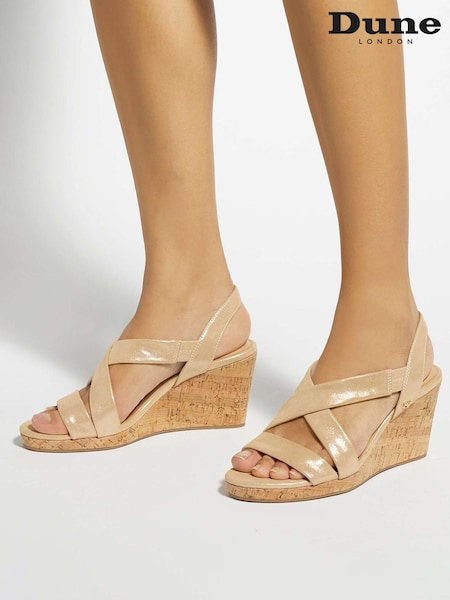 Dune London Metallic Standard Fit Leather Kamies Cross Strap Wedge Sandals