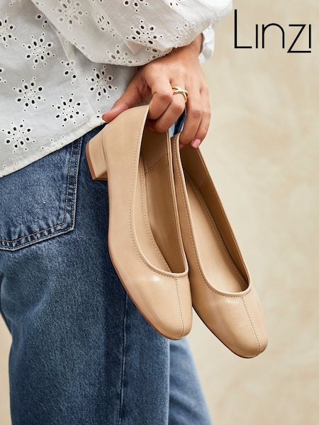 Linzi Natural Origin Square Toe With Low Block Heel Pumps