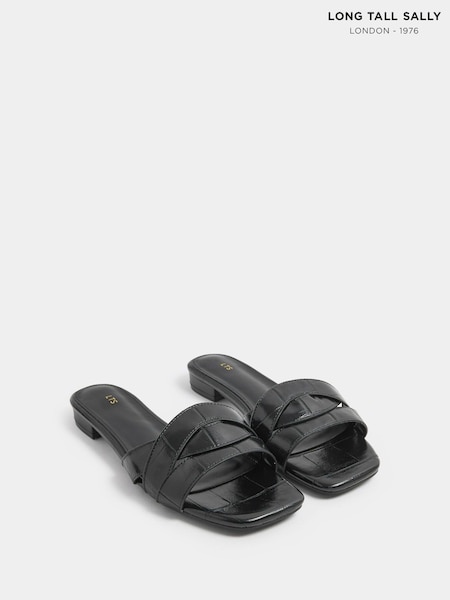 Long Tall Sally Black Leather Cut Out Mule Sandals